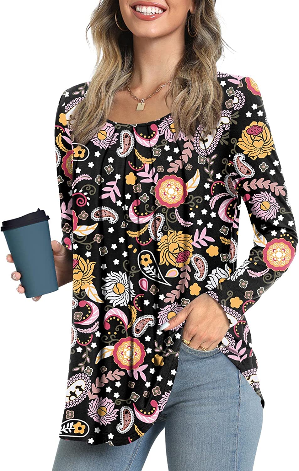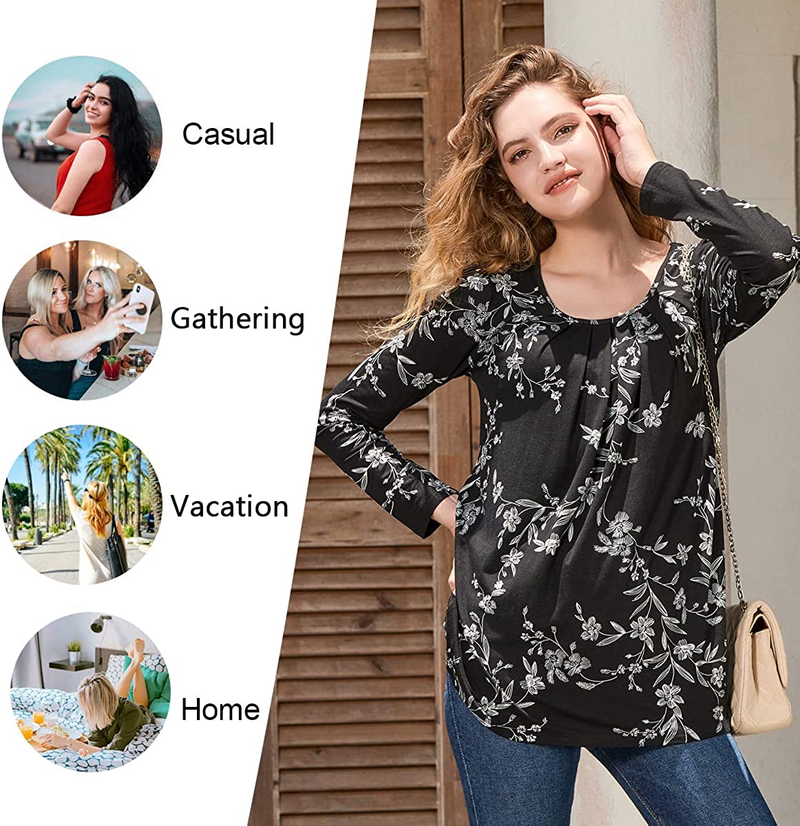 ❤【Features】 Crew neck, long sleeve, pleated on the front, easy to cover your belly and back area. Stretch, soft, loose, comfy, casual style. A variety of different solid and floral print are available for you to choose from.