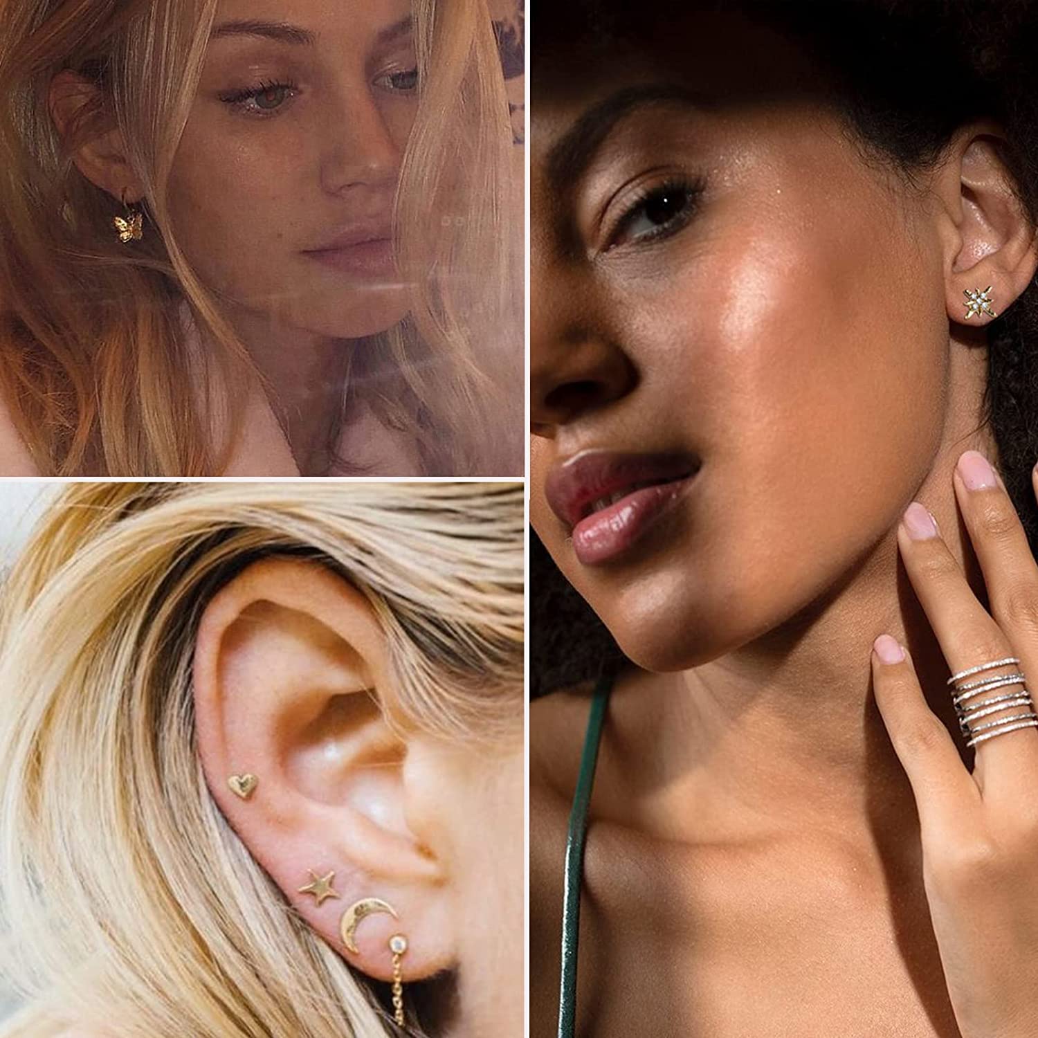 • Gold Stud Earrings: Totally 68 pairs of earrings to choose from, so you can wear them with any outfit and dress it up or down. The versatile sizes make it great for multiple piercings that won’t weigh your ear or your outfit down.