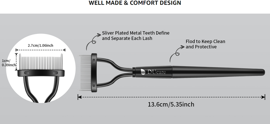 Eyelash Comb Eyebrow Brush DUcare Eyelash Separator Mascara Applicator Eyelash Definer with Comb Cover Arc Designed Cosmetic Brushes Tool Black