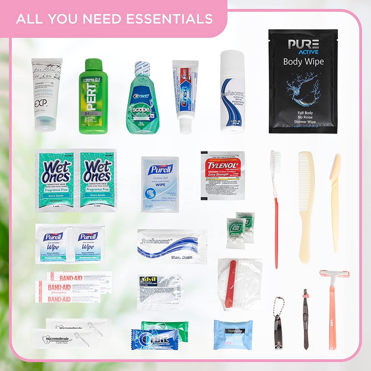 • WOMENS TOILETRY TRAVEL SIZE CONVENIENCE KIT - Great for traveling and short stays away from home