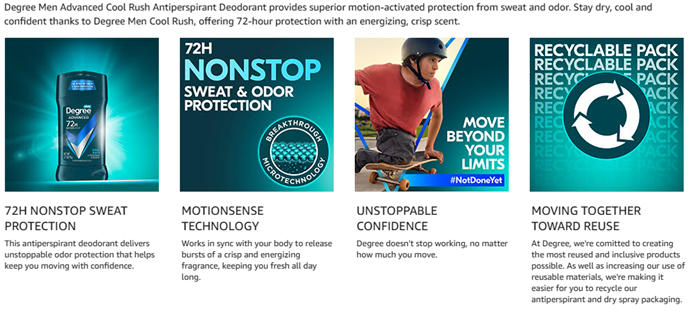 • RECYCLE WITH DEGREE: As well as increasing our use of reusable materials, we’re making it easier for you to recycle our antiperspirant and dry spray packaging