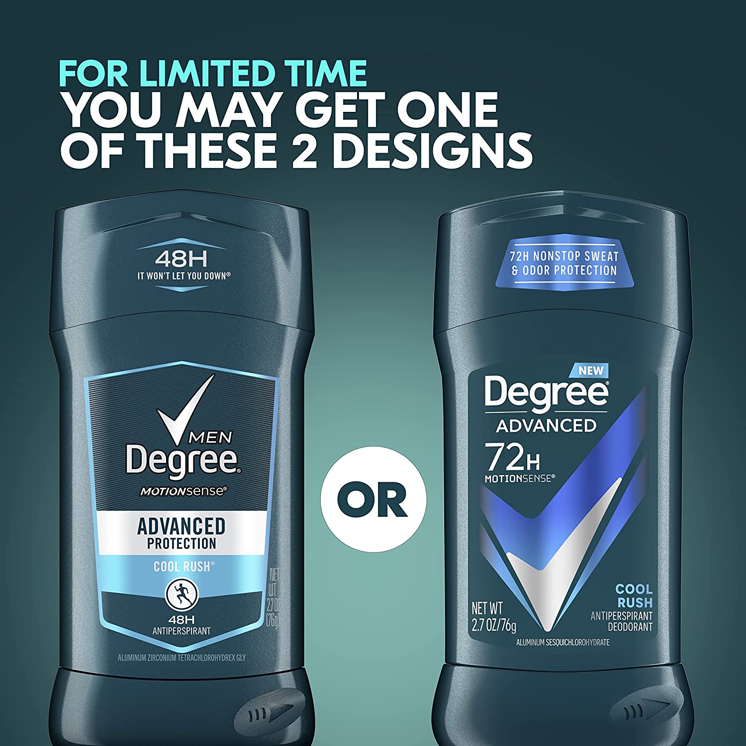 • 72-HOUR PROTECTION: Degree Men Advanced Protection Cool Rush Antiperspirant Deodorant provides up to 72 hours of protection against sweat and body odor