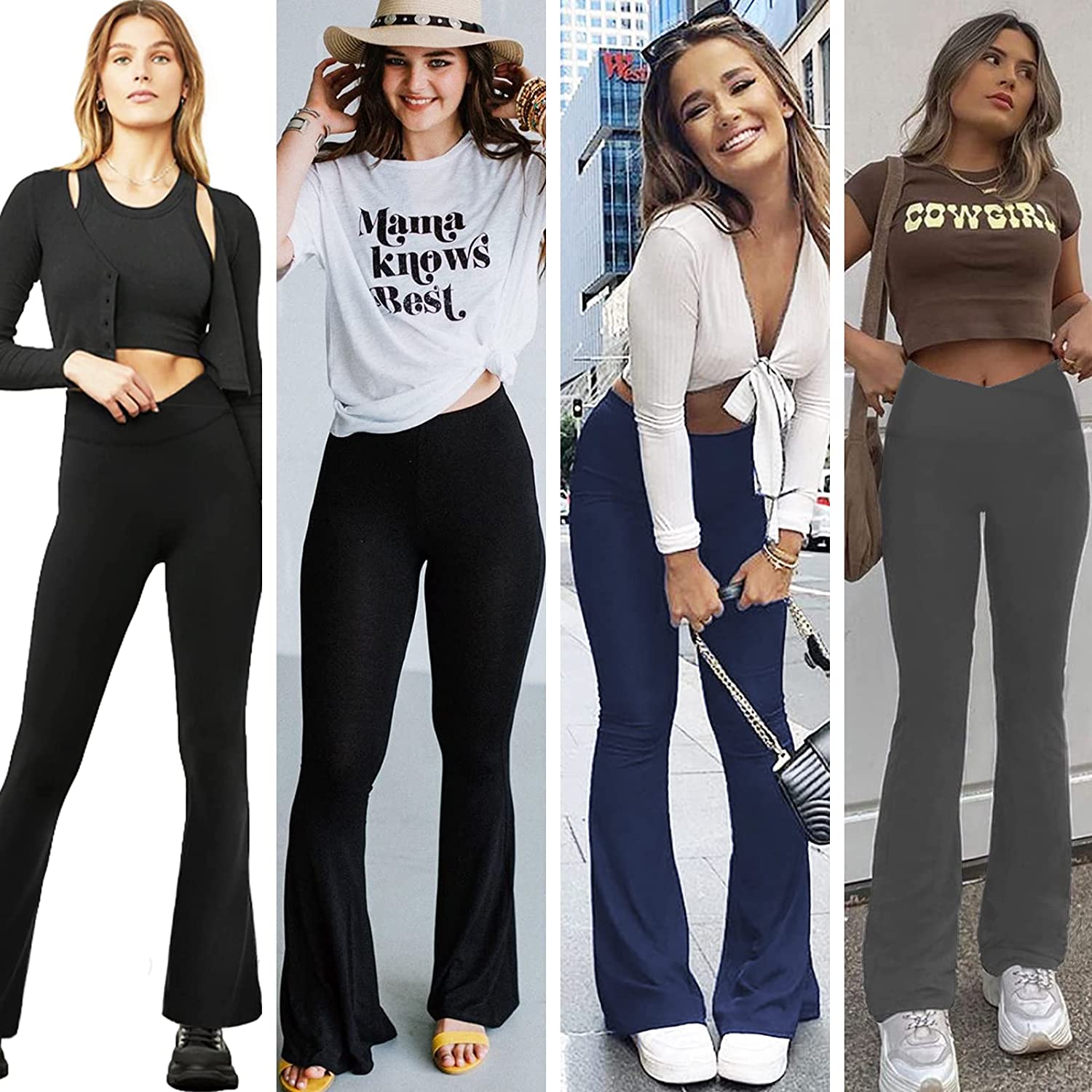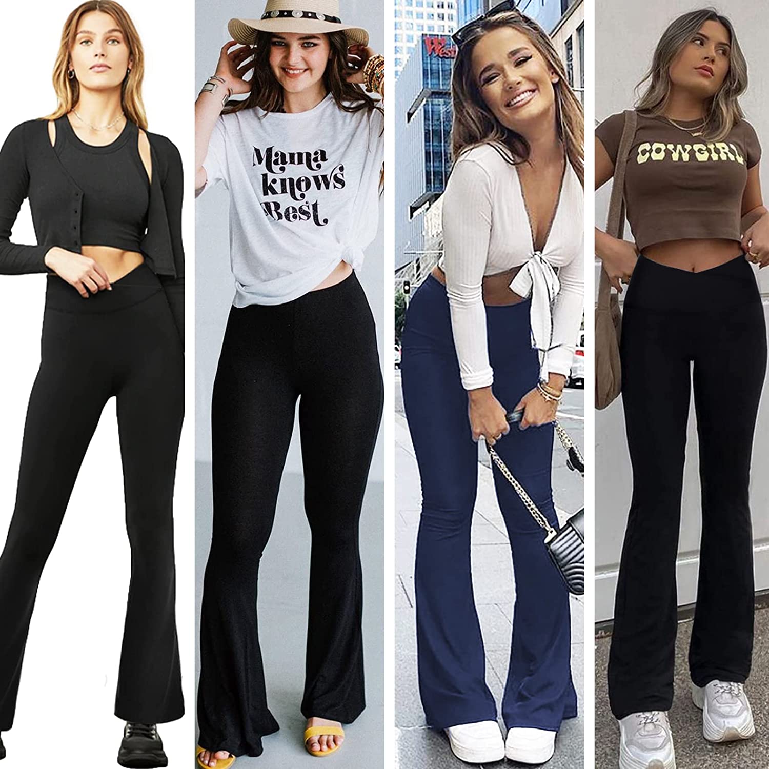 • Gentle Touch: 92% Polyester, 8% Spandex.Ultra-lightweight with comfy support & cozy touch.These flare pants are made with premium non see-through fabric wear-everyday that feels great against your skin.The 4-way stretch high performance fabric is supportive and opaque for a confident workout.Wear-tested & squat proof by our team for the perfect fit.