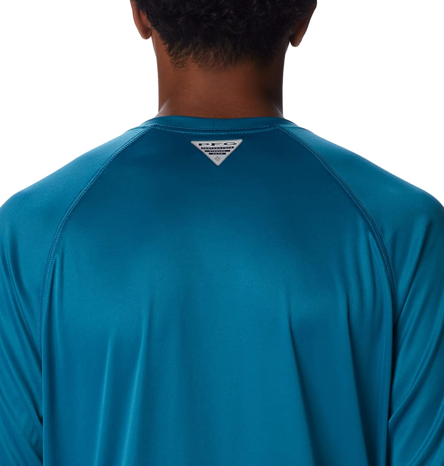 The polyester interlock construction of our PFG Terminal Tackle Long Sleeve Shirt offers full coverage against harmful midday sun with UPF 50 protection. It’s also lightweight and quick drying, making it the perfect solution for staying cool while protecting your skin out over any highly reflective water. It’s the ultimate day-out-on-the-boat staple… lightweight, durable, go-to gear. This technology featured long sleeve Tee is necessity for any day out on the ocean, lake, or river. Made up of a combination of Columbia’s signature protection fabrics: UPF 50 works to block and shield you from harmful UVA and UVB sun rays known to cause skin damage, while the advanced wicking fabric works to pull moisture and water away from the skin. You remain cool while our signature PFG logo runs along the sleeve. Columbia offers this fishing shirt in multiple staple colors and sizes. Available in extended sizing. Regular Fit. To ensure the size you choose is right, utilize our sizing chart and the following measurement instructions: For the sleeves, start at the center back of your neck and measure across the shoulder and down to the sleeve. If you come up with a partial number, round up to the next even number. For the chest, measure at the fullest part of the chest, under the armpits and over the shoulder blades, keeping the tape measure firm and level.