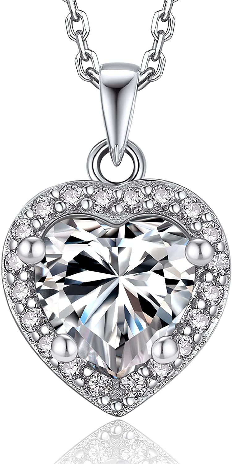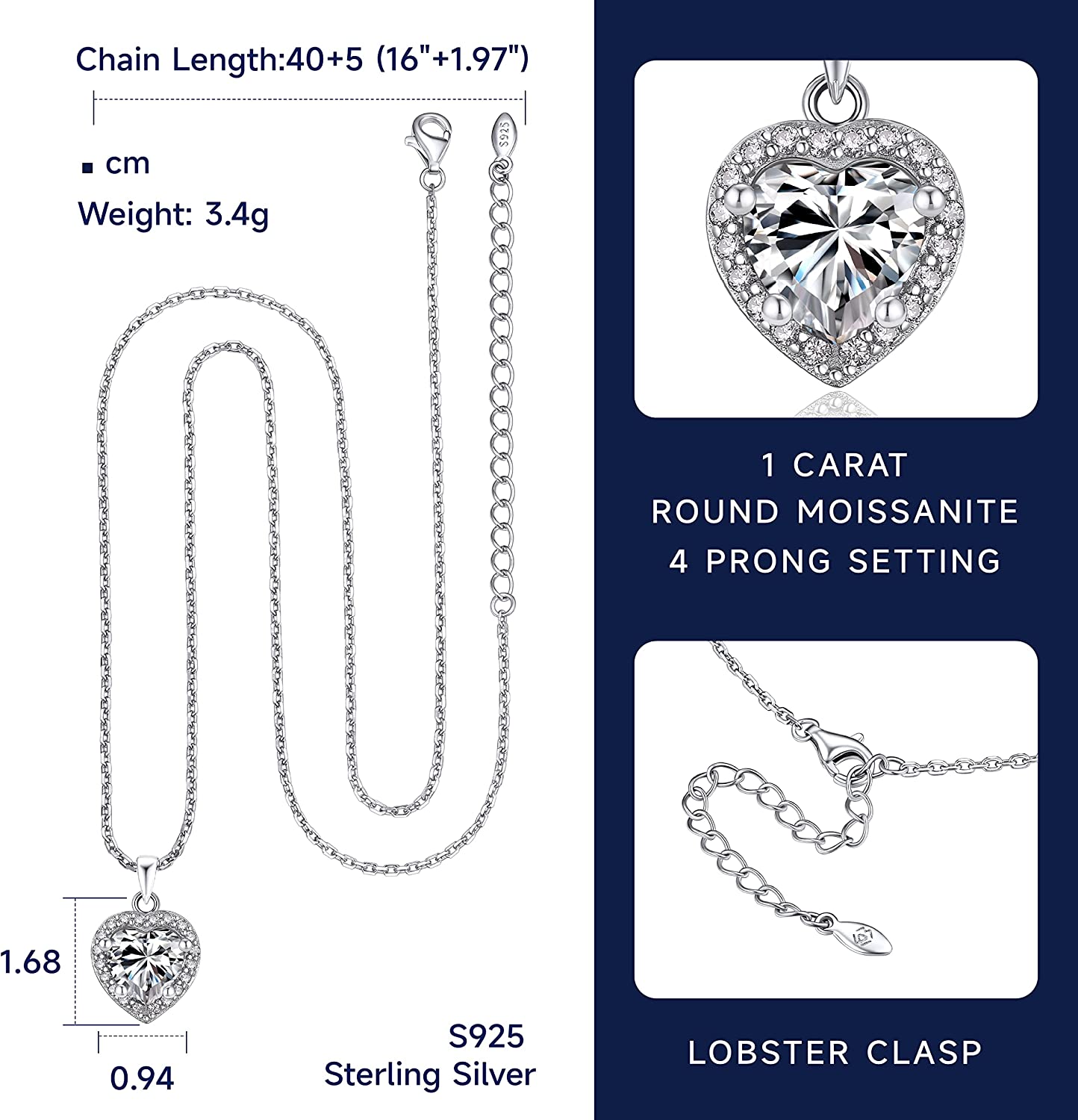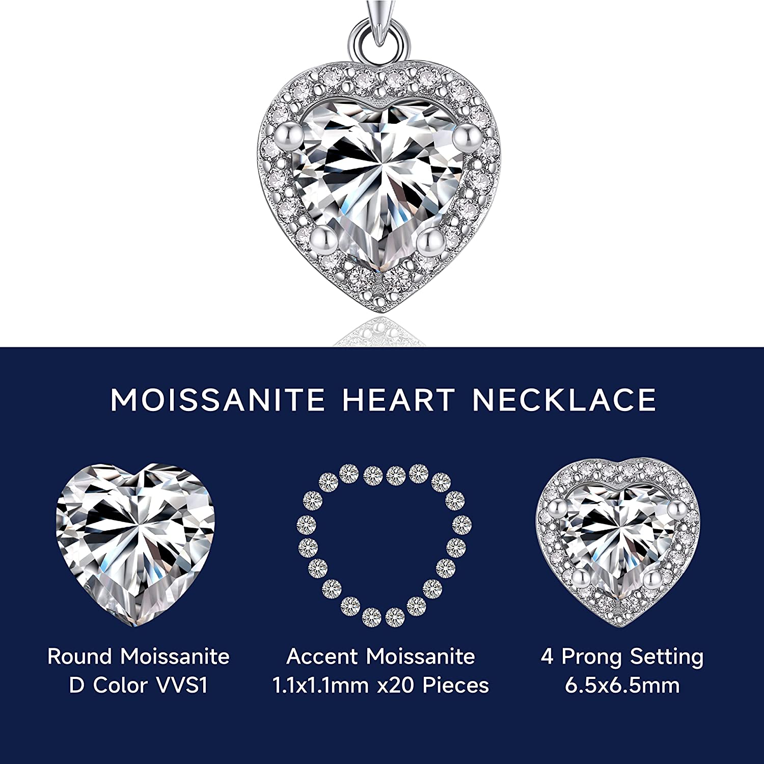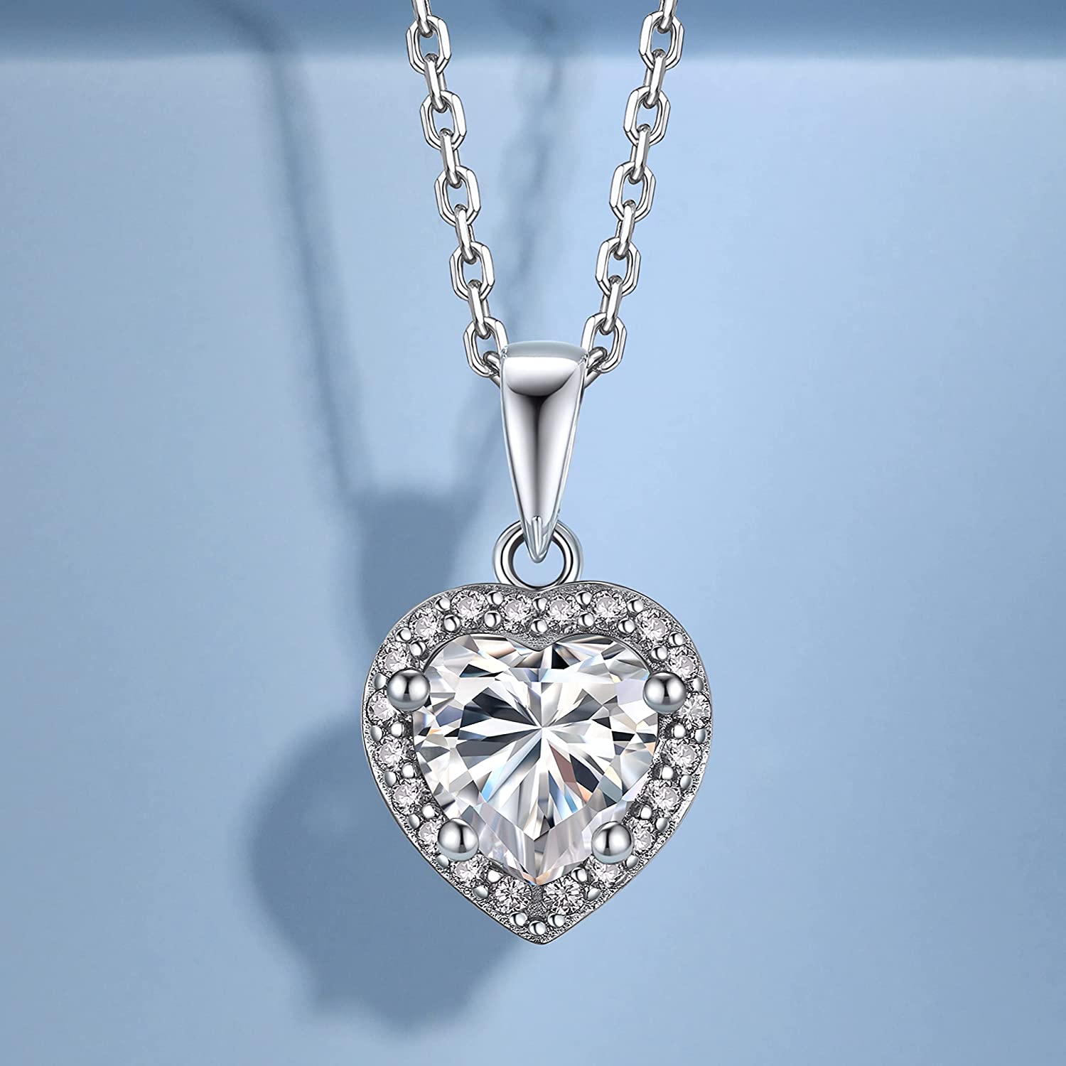 MomentWish Heart Pendant Necklace for Women, 1 Carat Moissanite Necklace, D Color VVS1 Simulated Diamond 925 Sterling Silver Heart Necklaces