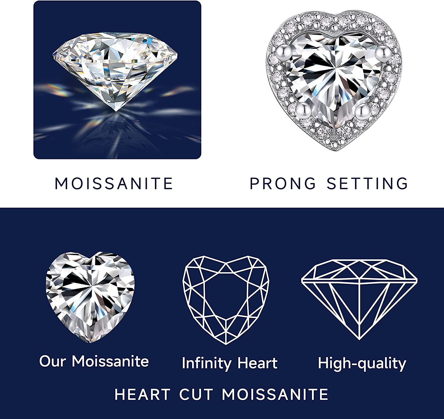 • ❤【Heart-shaped Pendant Necklaces】 ➣ This heart pendant necklace is a distinctive symbol of love. Features a brilliant heart-shaped centre moissanite 1ct 4 prong setting. With 20 glistening moissanite halo, this moissanite diamond necklace pendant is suspended from a well-crafted S925 sterling silver chain necklace that can be worn at 16 or 18 inches.