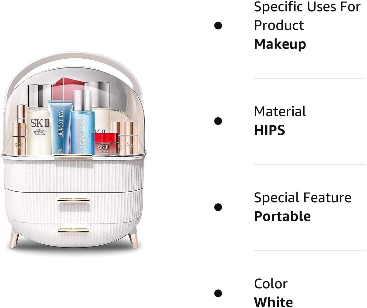 【Large Capacity&Compartment 】The top compartment can store about 12 tall bottles and the bottom 2 drawers are ideal to store your lipsticks,eye shadow,brushes, jewelry and other little pieces.