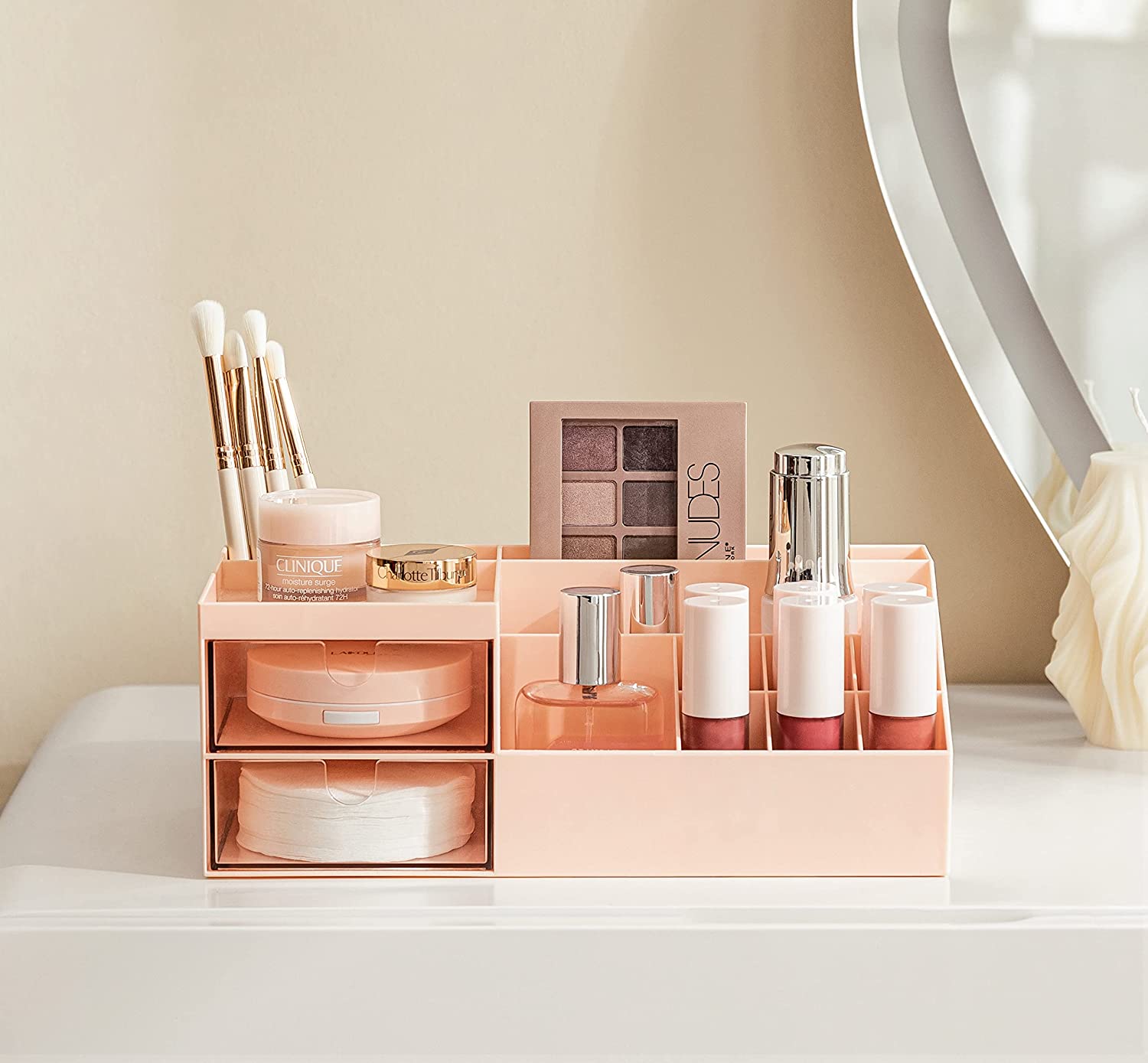 LARGE CAPACITY - The HBlife makeup organizer and storage has 11 compartments, which can store makeup palettes, eyeshadows, powders, nail polish, lotions, perfumes, makeup brushes, and other bathroom or office supplies.