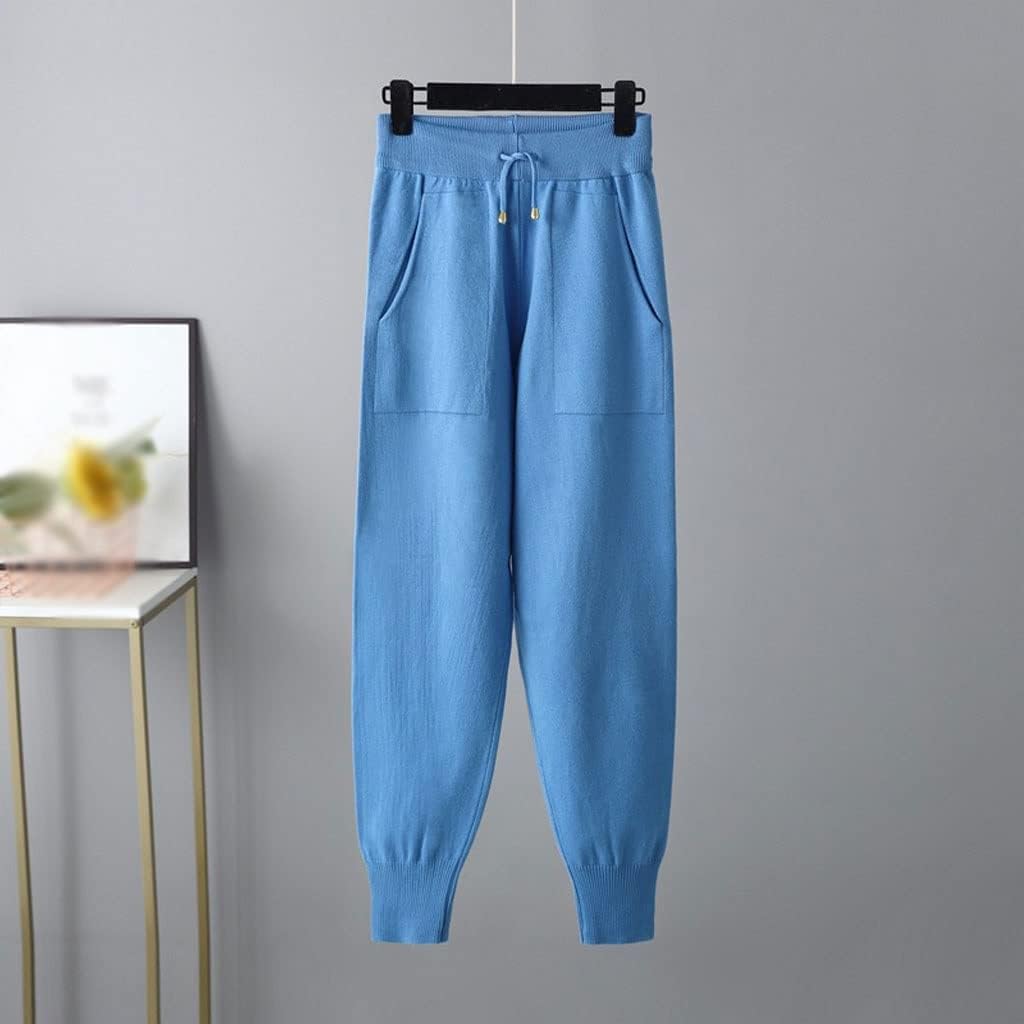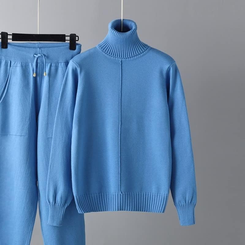 Walnut Two Pieces Cashmere Wool Suits Female Turtleneck Warm Knit Tops and Casual Pants Sets (Color : Gray, Size : 1)