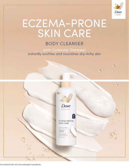 • CARE FOR ECZEMA-PRONE SKIN: Dove Body Love Eczema-Prone Skin Care Body Cleanser soothes & nourishes dry-itchy skin