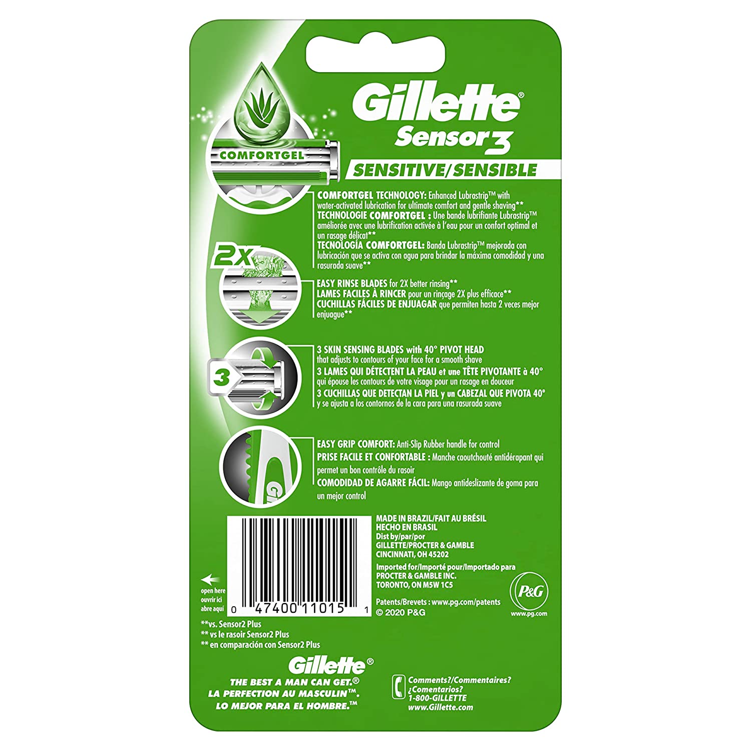 Disposable razor that can get you up to 10 gentle shaves? Gillette’s Sensor3 Sensitive does that thanks to 3 chromium-coated, skin sensing blades and a pivot head that adjusts to the contours of your face. Its enhanced Lubrastrip with water-activated Comfortgel technology provides you with an ultra gentle shaving. The razor features an anti-slip rubber handle for control and maneuverability and easy rinse blades for 100% better rinsing*. *vs. Sensor2 Plus