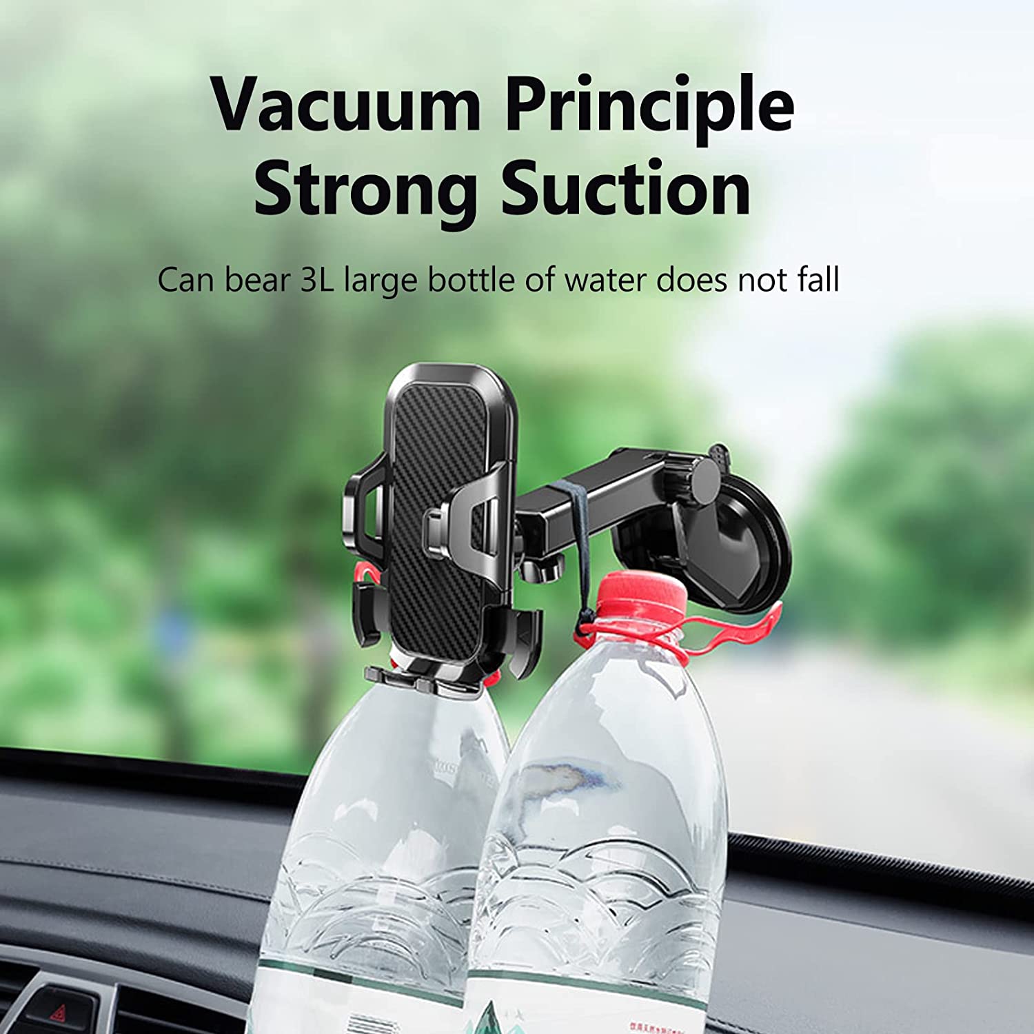 ? High Quality: The holder panel is made of imitation carbon fiber material, PC+ABS Material with better heat resistance, up to 65 pounds suction force firmly grips the dashboard, ensuring that your device will stay firmly in position, even on bumpy roads, sharp turns, or emergency brakings.
