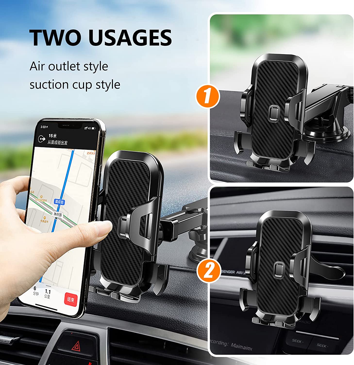 Yonput 1 PC Car Phone Holder Mount, Two Styles Black Cell Phone Holder Car Dashboard Windshield Air Vent Universal Phone Car Mount Compatible with All Phones (Suction Cup Holder & Air Vent Holder)