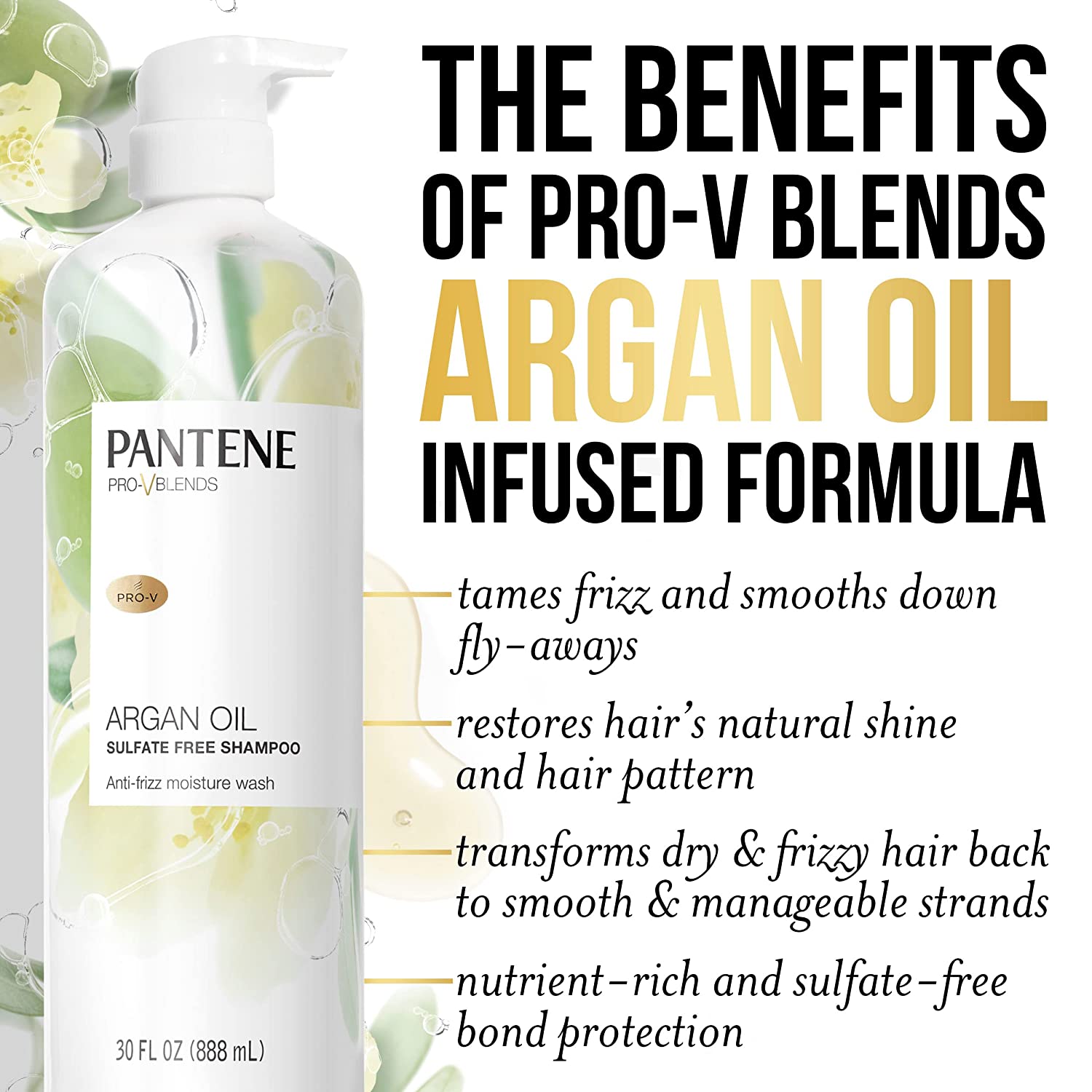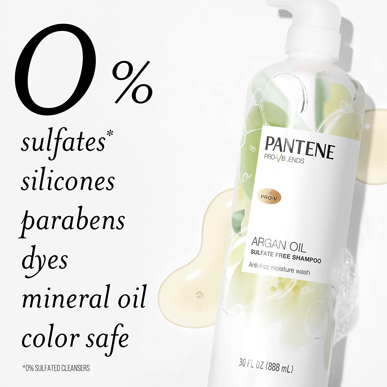 Pantene Sulfate Free Argan Oil Shampoo for Dry Damaged hair, Safe for Color Treated Hair, Smoothing and Moisturizing, Nutrient Infused with Vitamin B5, Anti Frizz, Pro-V Blends, 30.0 oz