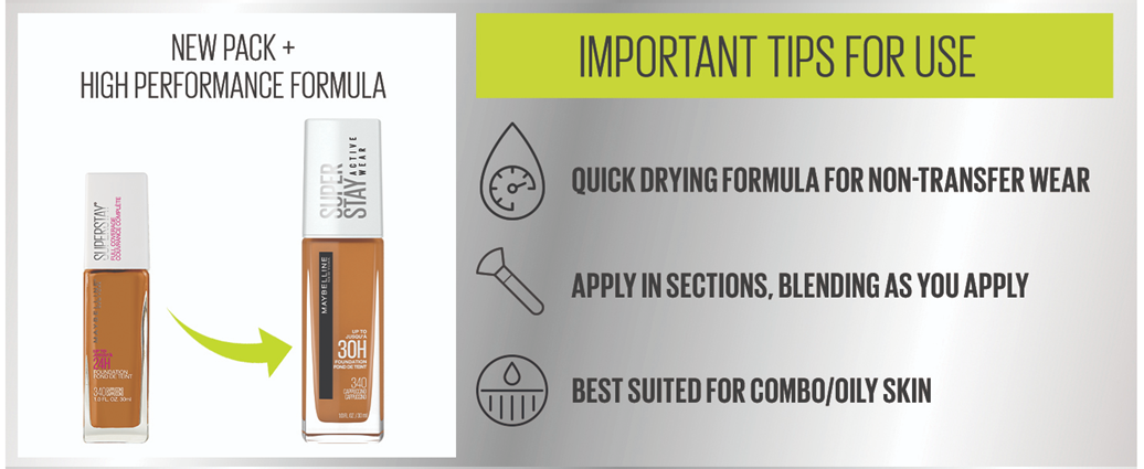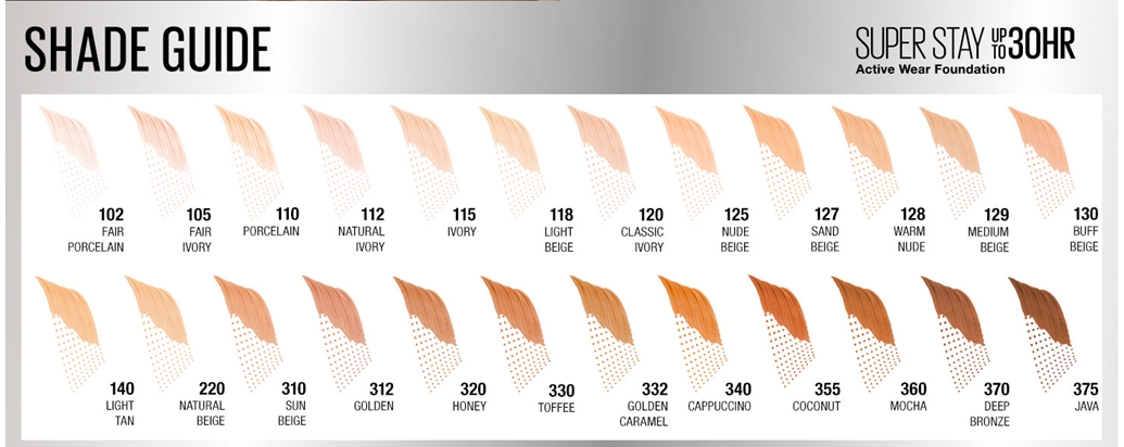 - Full Coverage Matte Foundation Formula: Super Stay Active Wear Foundation is transfer resistant, water resistant and sweat resistant; Get a seamless matte foundation look that glides onto skin for even color and ligtweight wear