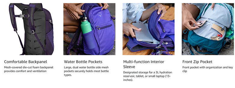• The multi-function interior sleeve can be used for either a hydration reservoir or tablet