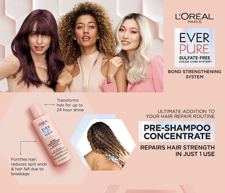 When hair is colored, bleached and damaged it can become weak from within. EverPure Bond Repair system with citric acid penetrates inside the hair cortex to rebuild weak hair bonds. Repairs hair in just one use with system. Scientifically proven to strengthen hair and reduce breakage. For smoother hair than with the number one prestige routine*. *on wet (damaged) hair in instrumental test. Leading prestige routine based on NPD full year data.