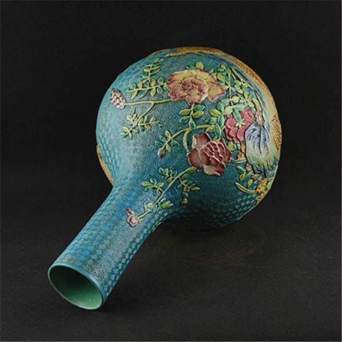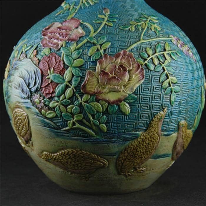 MJWDP Classic Green Ceramic Vase Embossment Antique Porcelain Flower Vase for Decoration