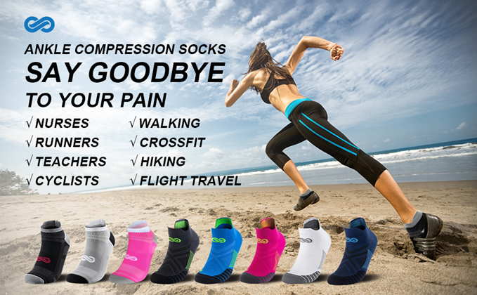 - [MORE COMPRESSION FOR EXERCISE] COMPRESSION is proven to improve blood flow, move faster, react quicker and use less energy. Targeted compression zones provide varying levels of support from moderate to extra firm. These ankle compression socks are designed to promote blood circulation and oxygen flow preventing cramping, fatigue, swelling and helps in muscle recovery, plantar fasciitis