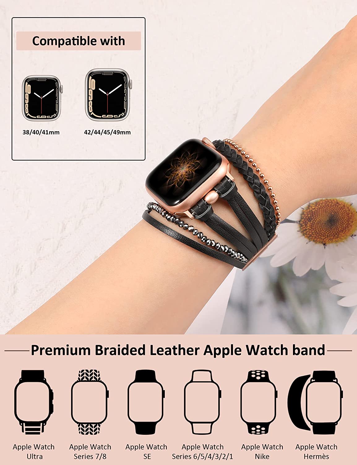 Adapted to your watch: Our leather watch bands are compatible with Apple Watch band Apple Watch Ultra (49mm), Series 8/7(41/45mm), Series SE/6/5/4(40/44mm) and Series 3/2/1 (38/42mm). Just choose the size you need.