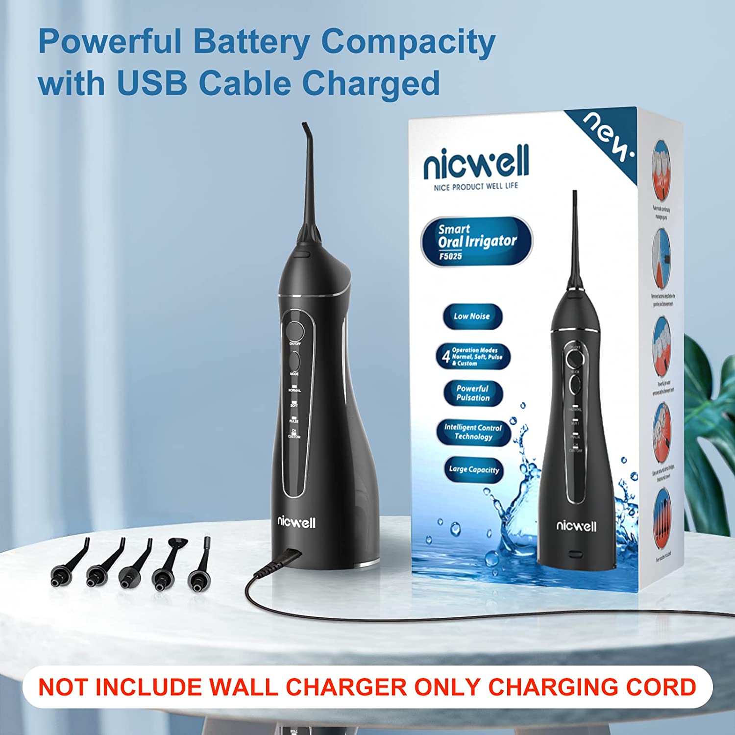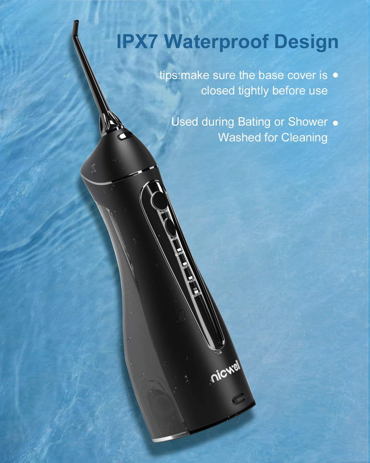 Water Dental Flosser Cordless for Teeth - Nicwell 4 Modes Dental Oral Irrigator, Portable and Rechargeable IPX7 Waterproof Powerful Battery Life Water Teeth Cleaner Picks for Home Travel