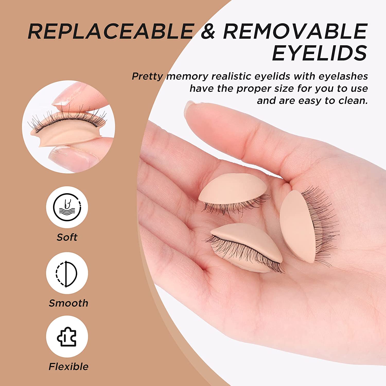 BEYELIAN Lash Mannequin Head, Eyelash Mannequin Head with Eyelids, Lash Extension Training Practice Head, 4 Pairs Removable Eyelids, Soft-Touch, Natural Color Realistic