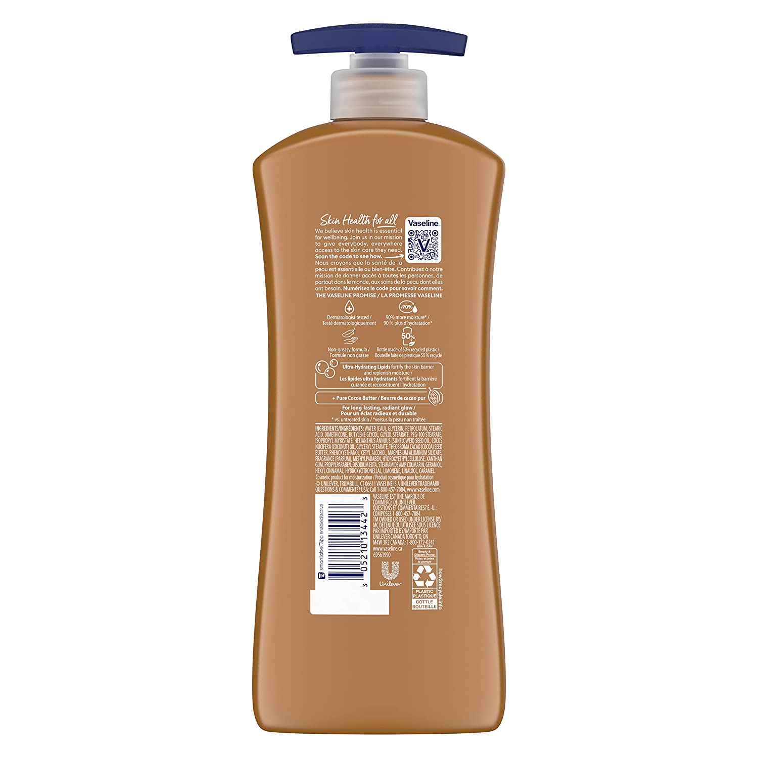 Vaseline Intensive Care Body Lotion for Dry Skin Cocoa Radiant Lotion Made with Ultra-Hydrating Lipids and Pure Cocoa Butter for a Long-Lasting, Radiant Glow 20.3 oz, Pack of 3