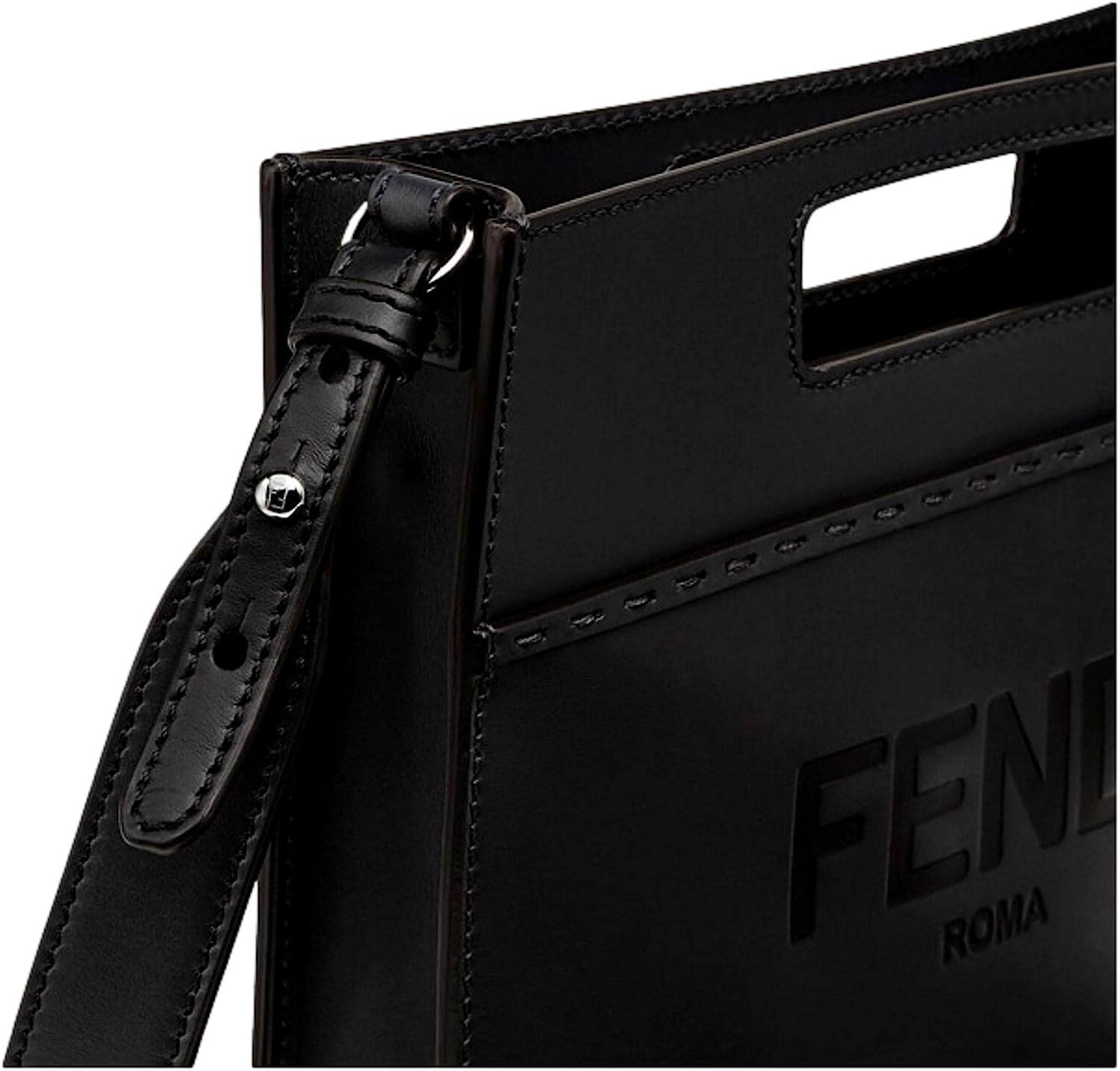 FENDI Logo 2-Way Smooth Black Leather Small Tote Bag 7VA547